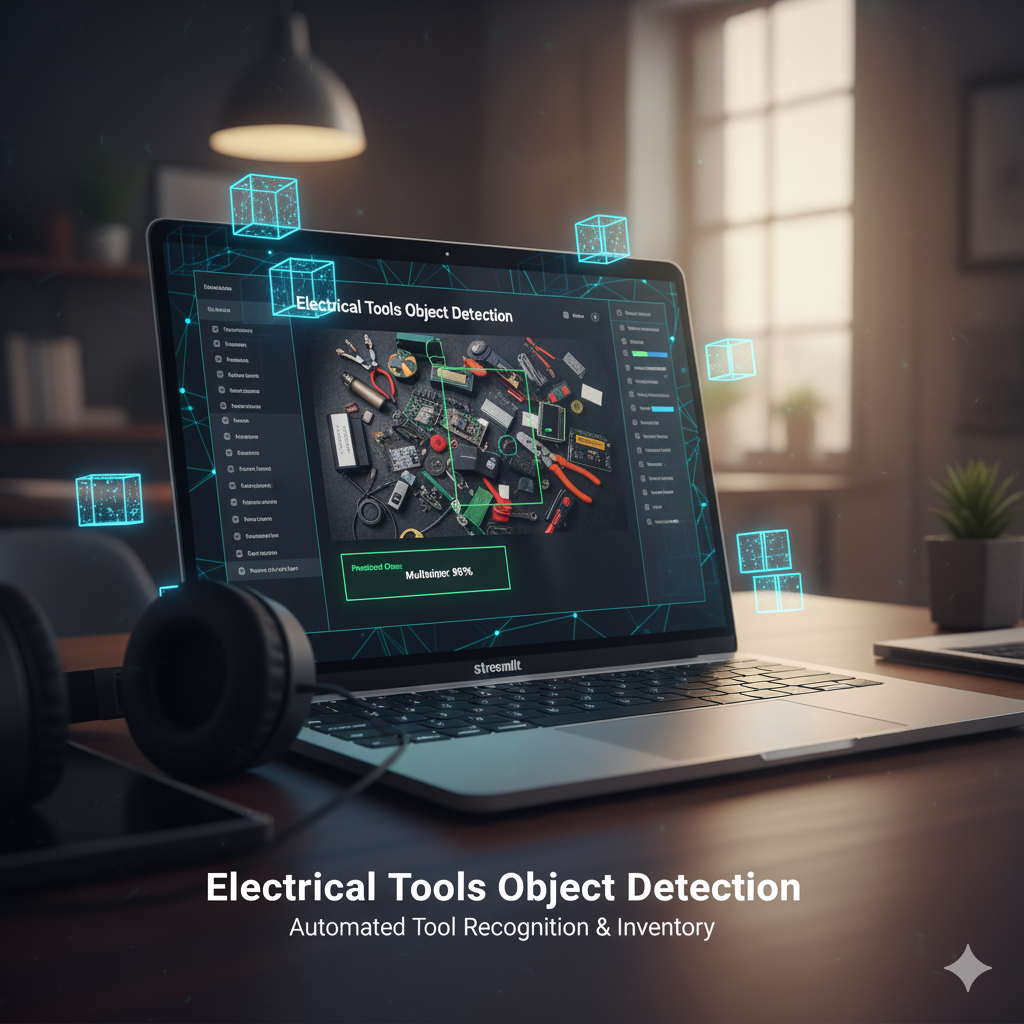 This project implemented an Object Detection pipeline using YOLOv8 on a custom 500-image dataset of 10 electrical tool classes (labeled via Roboflow), culminating in a Streamlit application capable of real-time image and video inference.